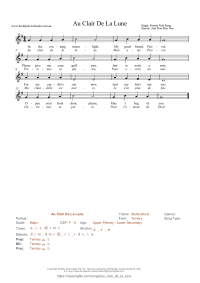 Au Clair De La Lune A great song for teaching ternary form, the rhythmic element too-oo-oo-oo and the melodic element...