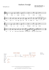 Anchors Aweigh Written for the Navy in 1907, this song has an inspirational melody!
