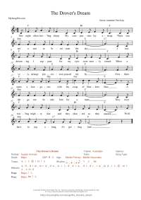 The Drover's Dream Written in 6/8, this song with it's lilting melody is a fanciful song about Australian animals.