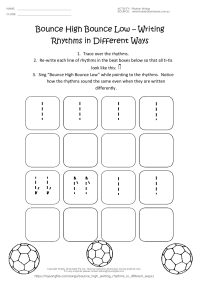 Bounce High (Writing Rhythms in Different Ways) An easy practise activity for writing "ta" and "ti-ti" in different ways.