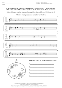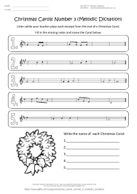 • "Christmas Carols Melodic Dictation Number 1" is made up of excerpts from the beginning of 5 different Christmas Carols.