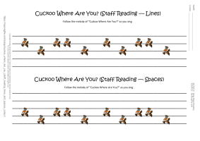 Cuckoo Where Are You (Stave Writing) "Cuckoo Where Are You? - Stave Writing" is a page with 2 lines of stave and pictures...