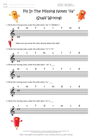 Fill In The Missing Notes fa (Staff Writing) Students will write "do", "re", "mi", "fa", "so" and "la" starting on...