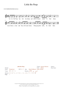 Little Bo Peep "Little Bo Peep" - a great song for students to experience beat in a 6/8 time signature. Free on Kodaly...