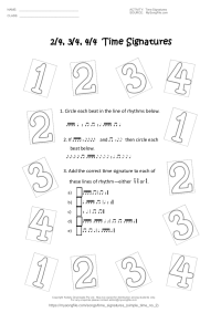 Time Signatures (Simple Time no 2) Practice for 2/4, 3/4 and 4/4 time signatures.