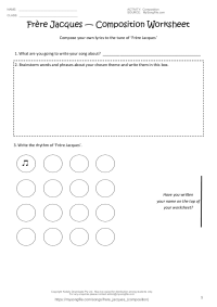 Frere Jacques (Composition) A step-by-step worksheet designed to develop skills required for composing.