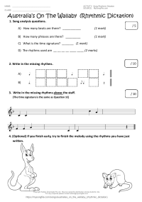 Australia's On The Wallaby (Rhythmic Dictation) This worksheet begins with analysis questions and rhythmic exercises to...