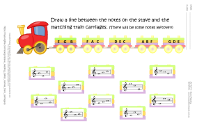Stave Reading (Letter Names Train Carriages) A treble clef note reading activity.