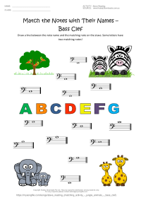 Stave Reading (Matching Activity - Jungle Animals - Treble Clef) Theme: Animals Games: