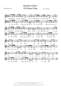 Drunken Sailor and Oh Sinner Man Drunken Sailor and O Sinner man as a partner song in score format!