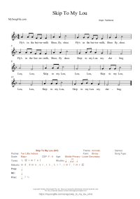 Skip To My Lou (4/4) Can be sung as a partner song with 'Ten Little Indians'.