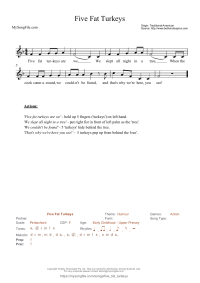 Five Fat Turkeys A simple, funny song about Turkeys hiding so they can't be cooked!
