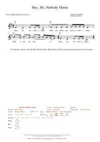 Hey Ho Nobody Home Can be sung with the canons "Rose Rose" and "Ah Poor Bird".