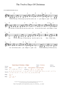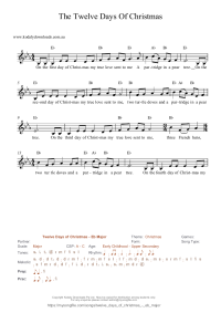 Twelve Days of Christmas - D Major "The Twelve Days of Christmas" in D Major